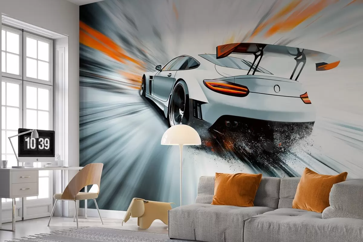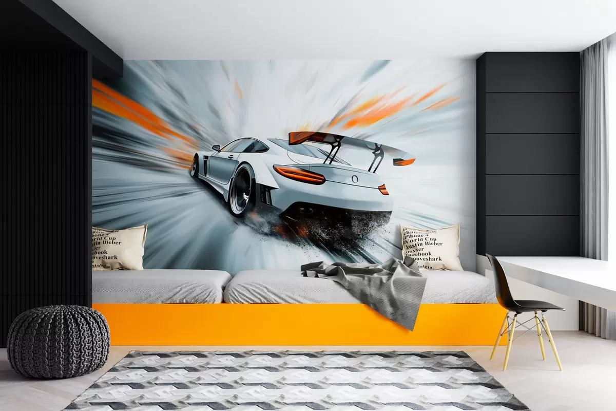 Фототапет динамичен спортен автомобил, който се втурва в пространството Nr w04074