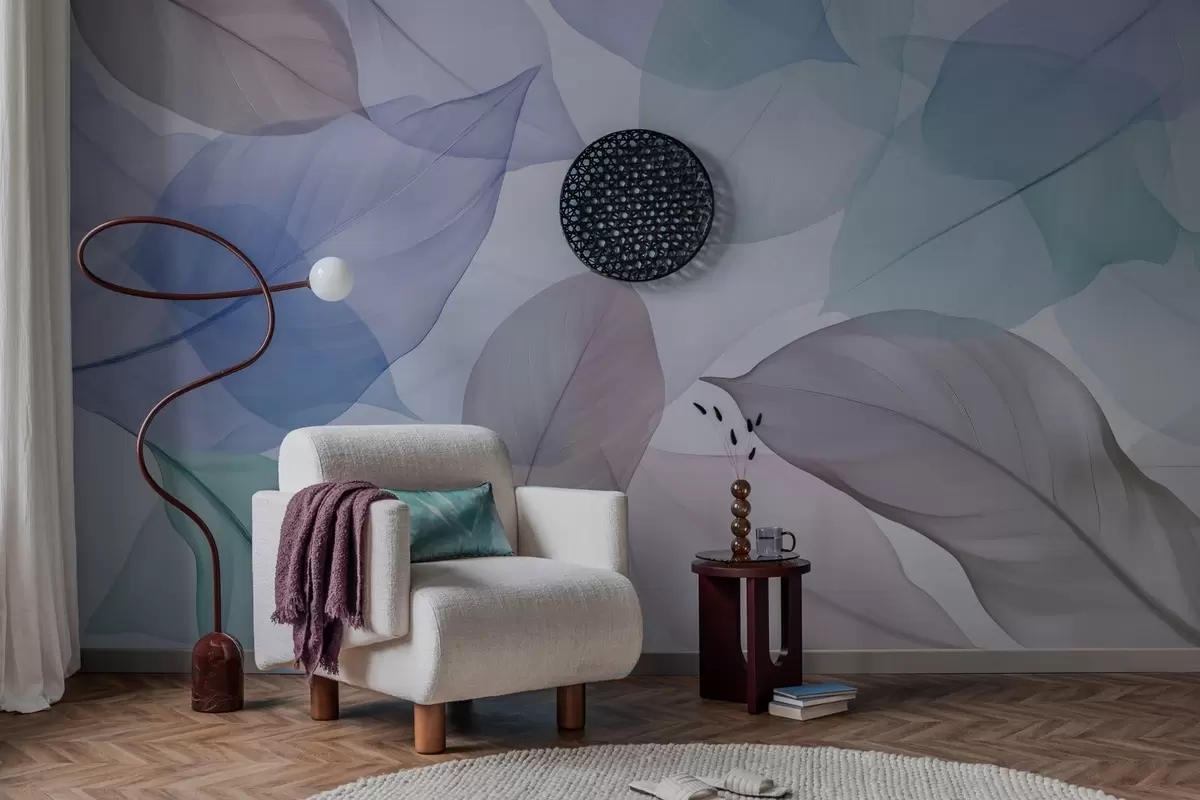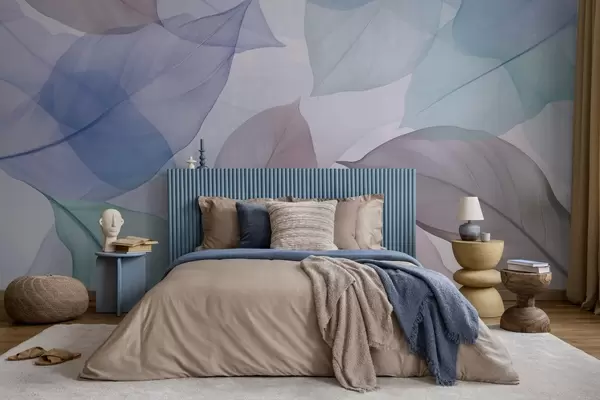 Фототапет Прозрачни листа с жилки в сини и кафяви тонове Nr w04075