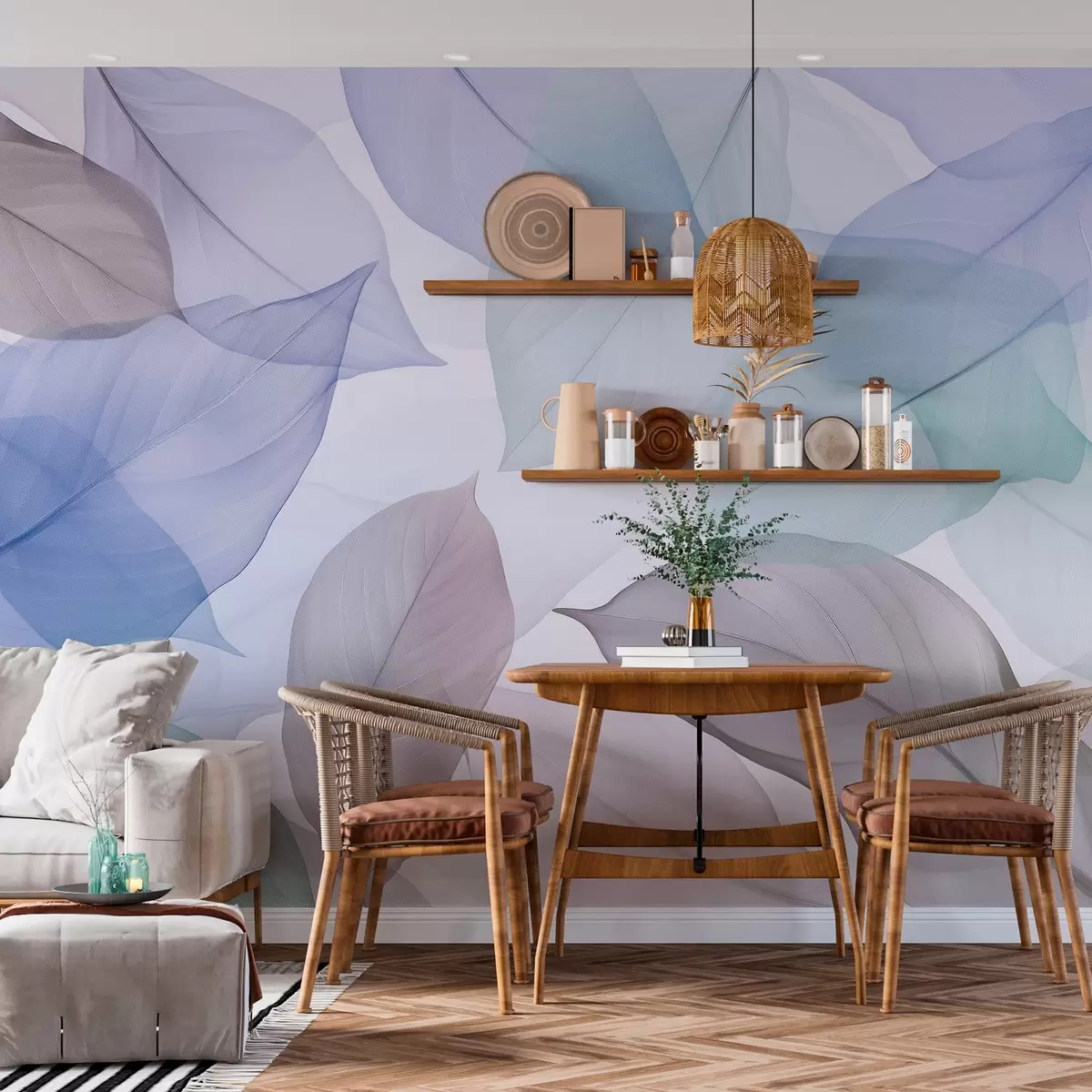 Фототапет Прозрачни листа с жилки в сини и кафяви тонове Nr w04075