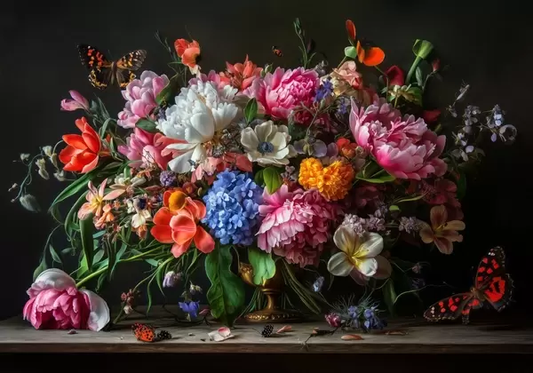 Фототапет букет в стила на холандската маслена живопис от XVII век с луксозна флорална композиция. Nr w04078