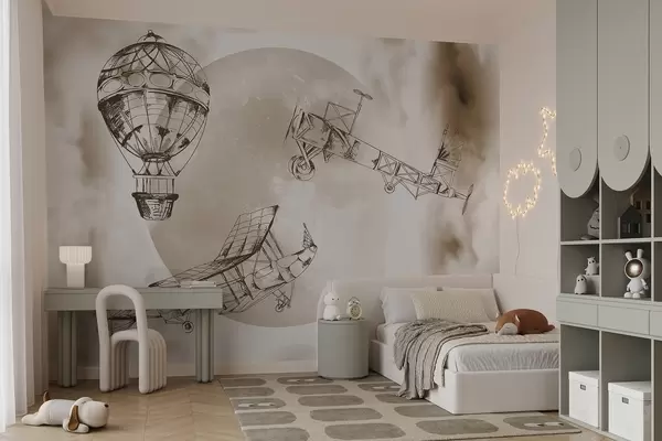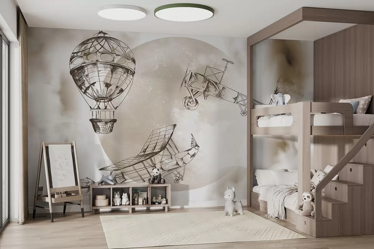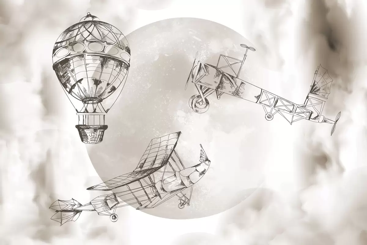 Фототапет Ретро самолети на фона на луната и облаците Nr w04085v1