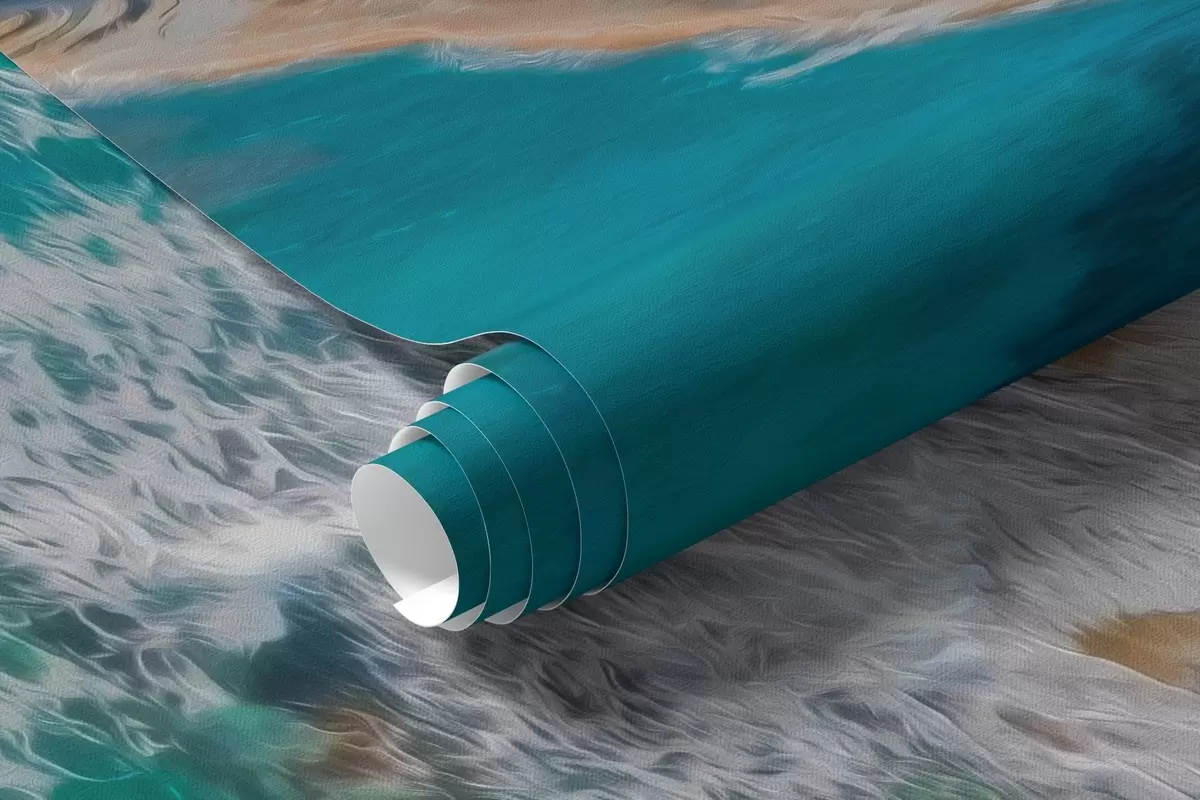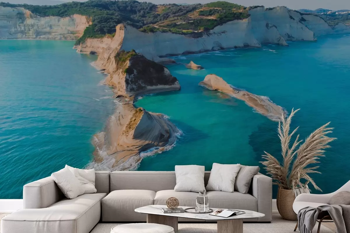 Фототапет Гърция остров, маслена текстура, морски бряг, аквамарин вода, реализъм Nr w04094