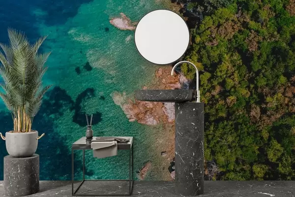 Фототапет Испания морско крайбрежие с акумулативна вода, борова гора, въздушна фотография Nr w04099
