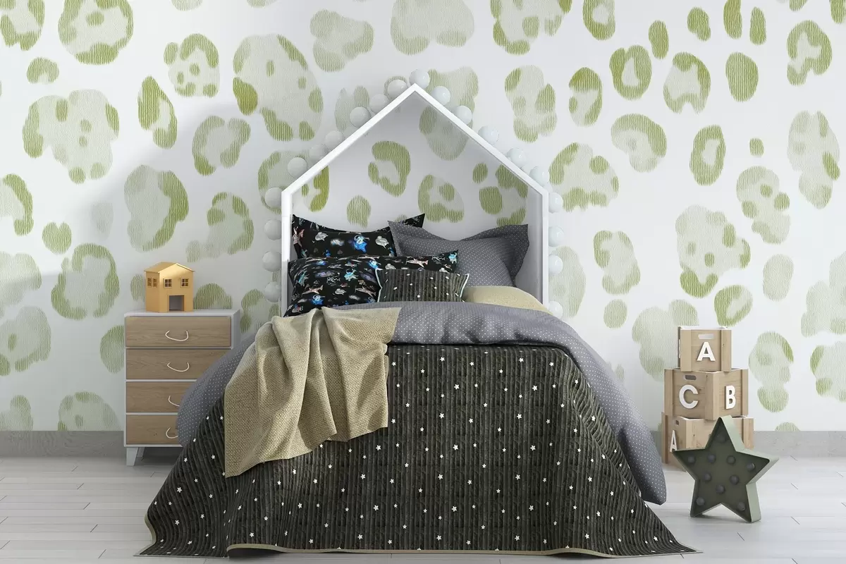 Фототапет Леопардов принт, текстура от вълна, зелен цвят Nr w04112v3