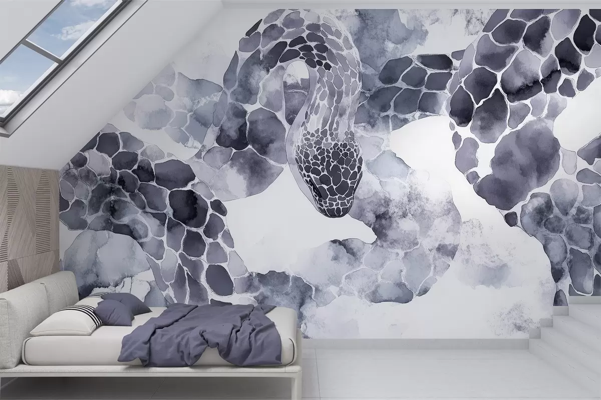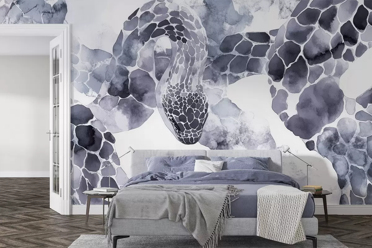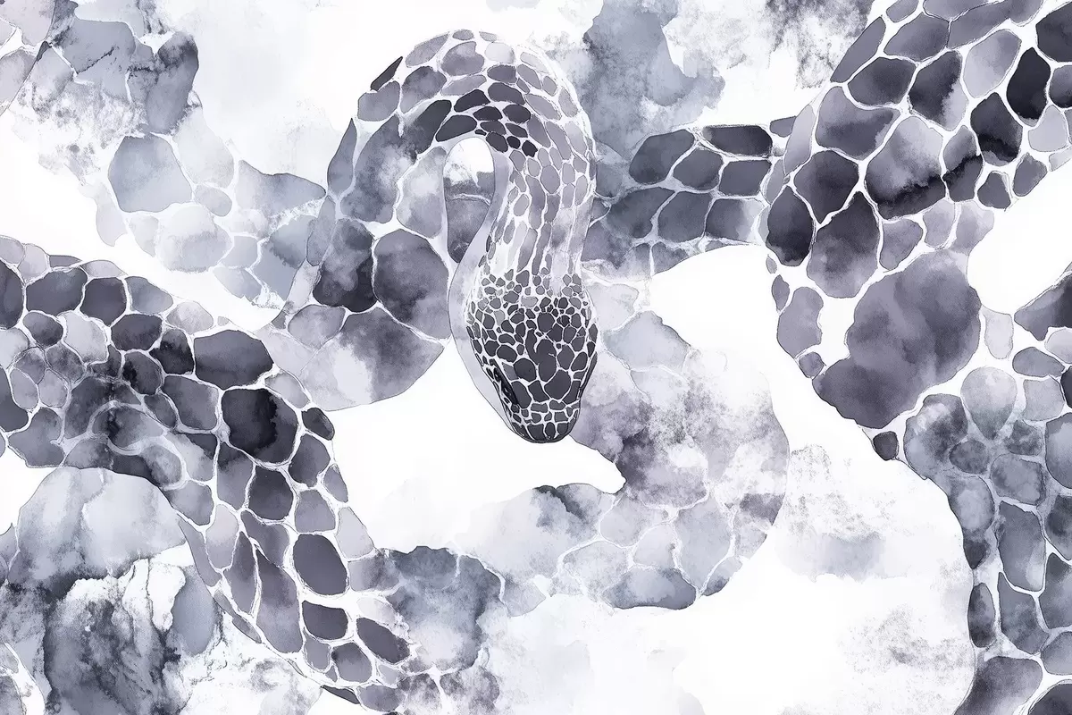 Фототапет Силует на змия, акварелен стил, сини цветове Nr w04113