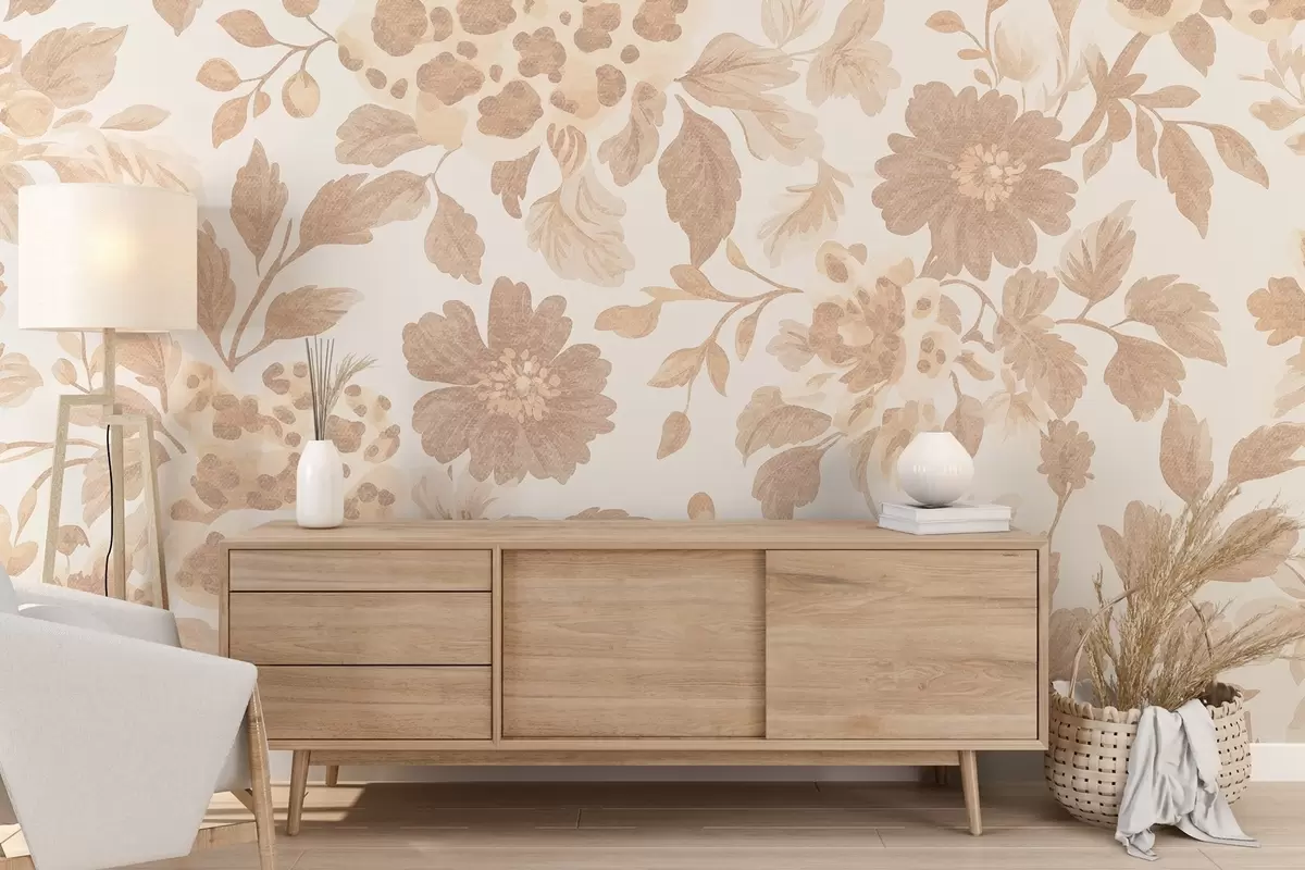 Фототапет Цветя в бохо стил с леопардов принт, бежов цвят Nr w04114
