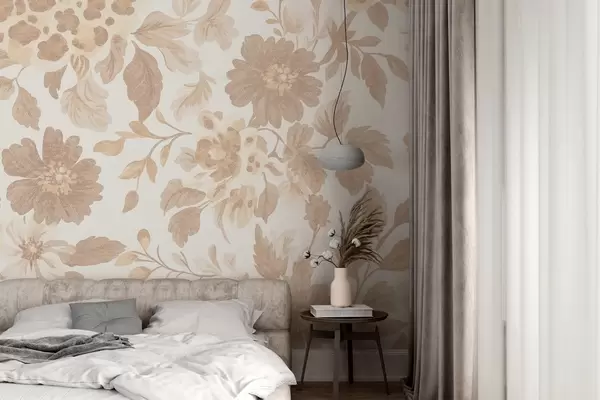 Фототапет Цветя в бохо стил с леопардов принт, бежов цвят Nr w04114