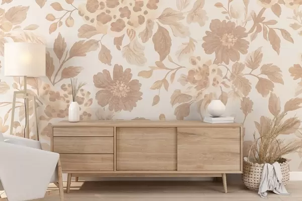 Фототапет Цветя в бохо стил с леопардов принт, бежов цвят Nr w04114