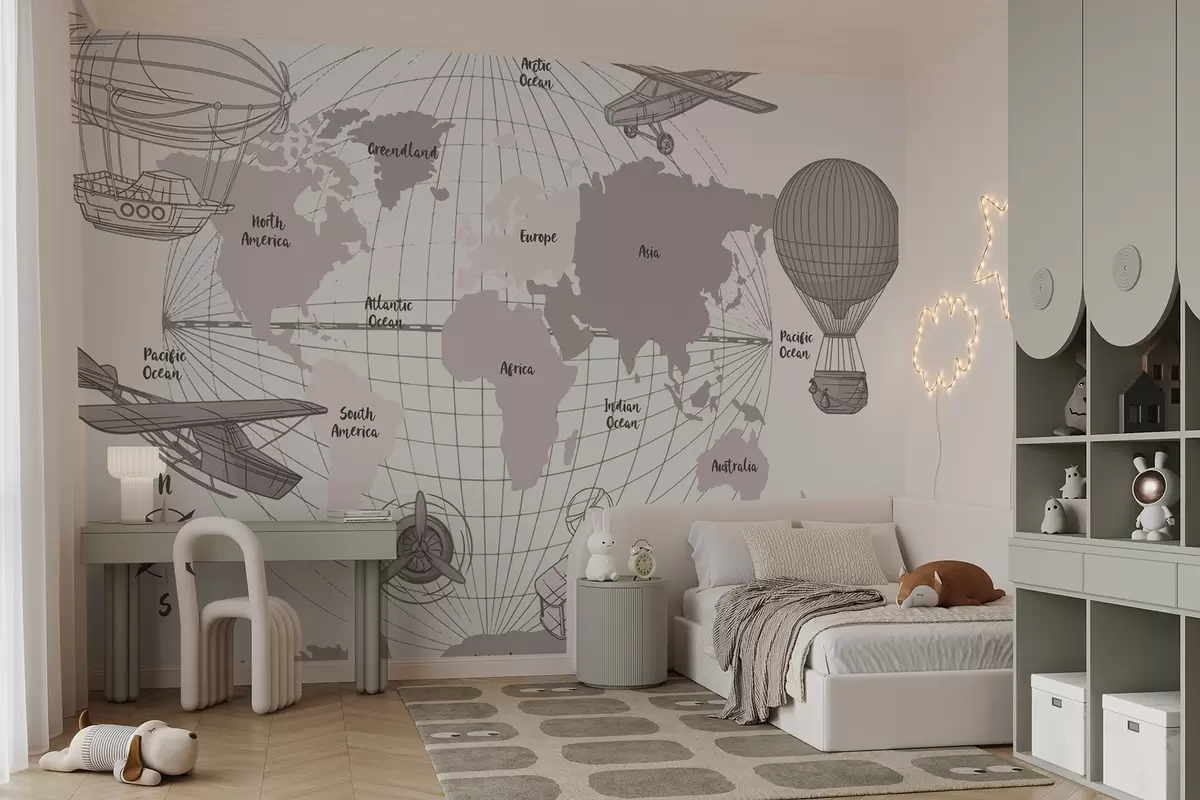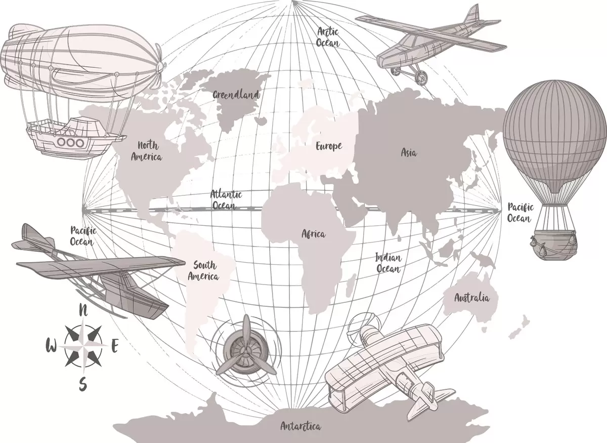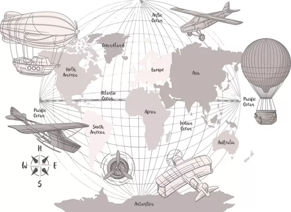 Фототапет Карта на света със самолети Nr w04177