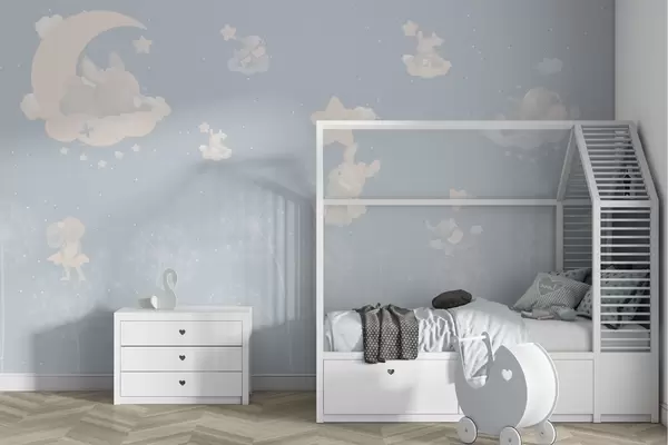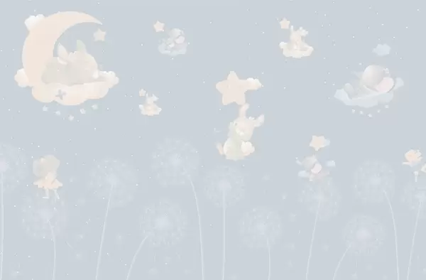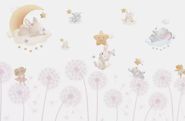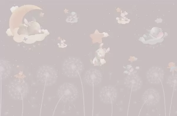 Фототапет Нощна приказка със заек, звезди и розови глухарчета Nr w04195v1