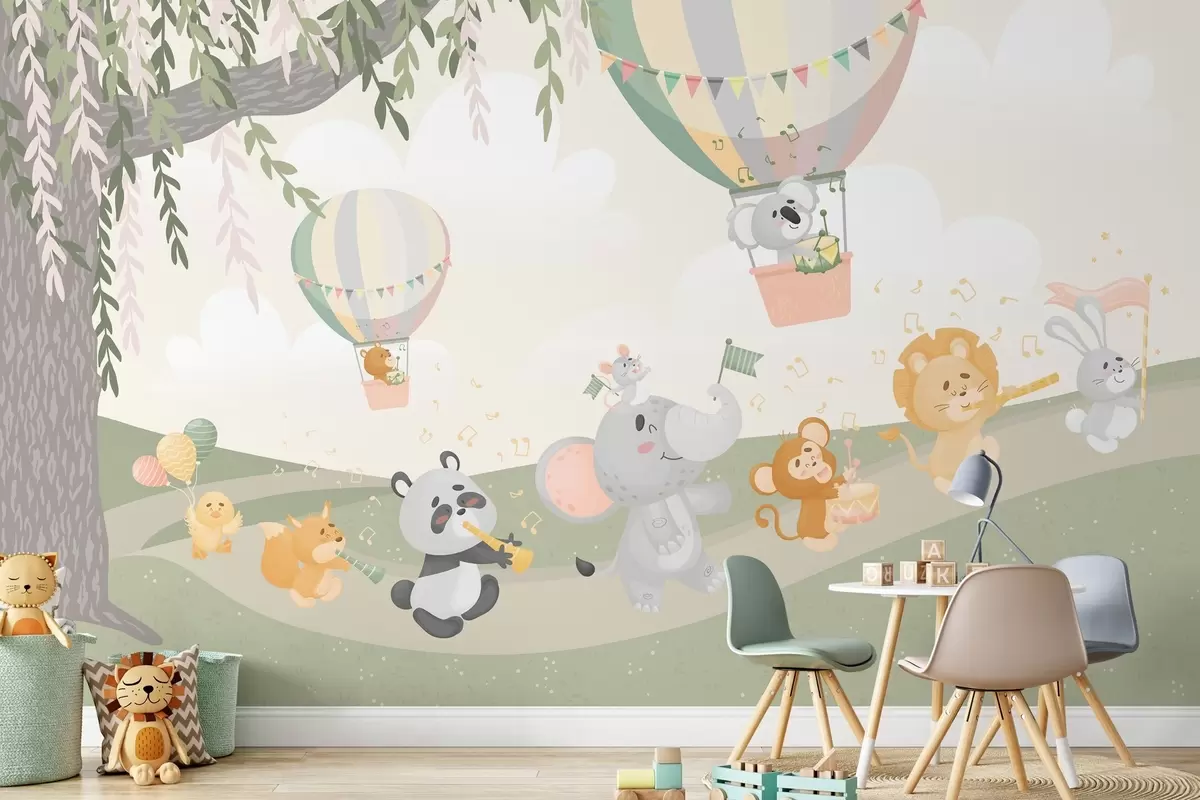 Фототапет Пейзаж с животни, свирещи на музикални инструменти Nr w04200v1