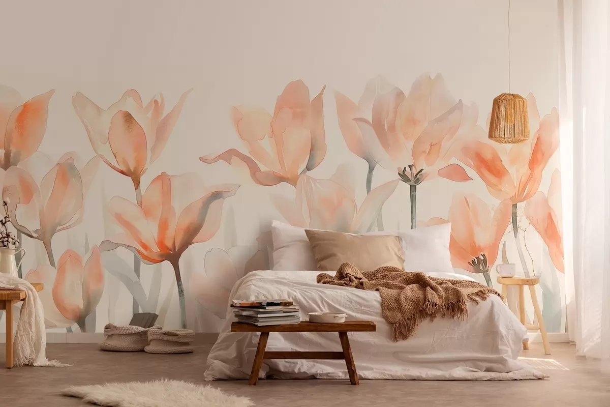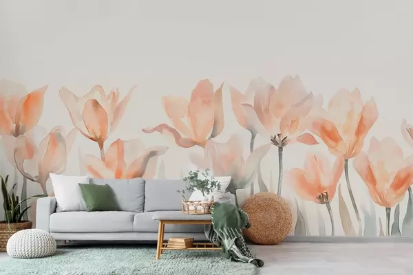 Фототапет свежи акварелни лалета, растящи отдолу Nr w04204