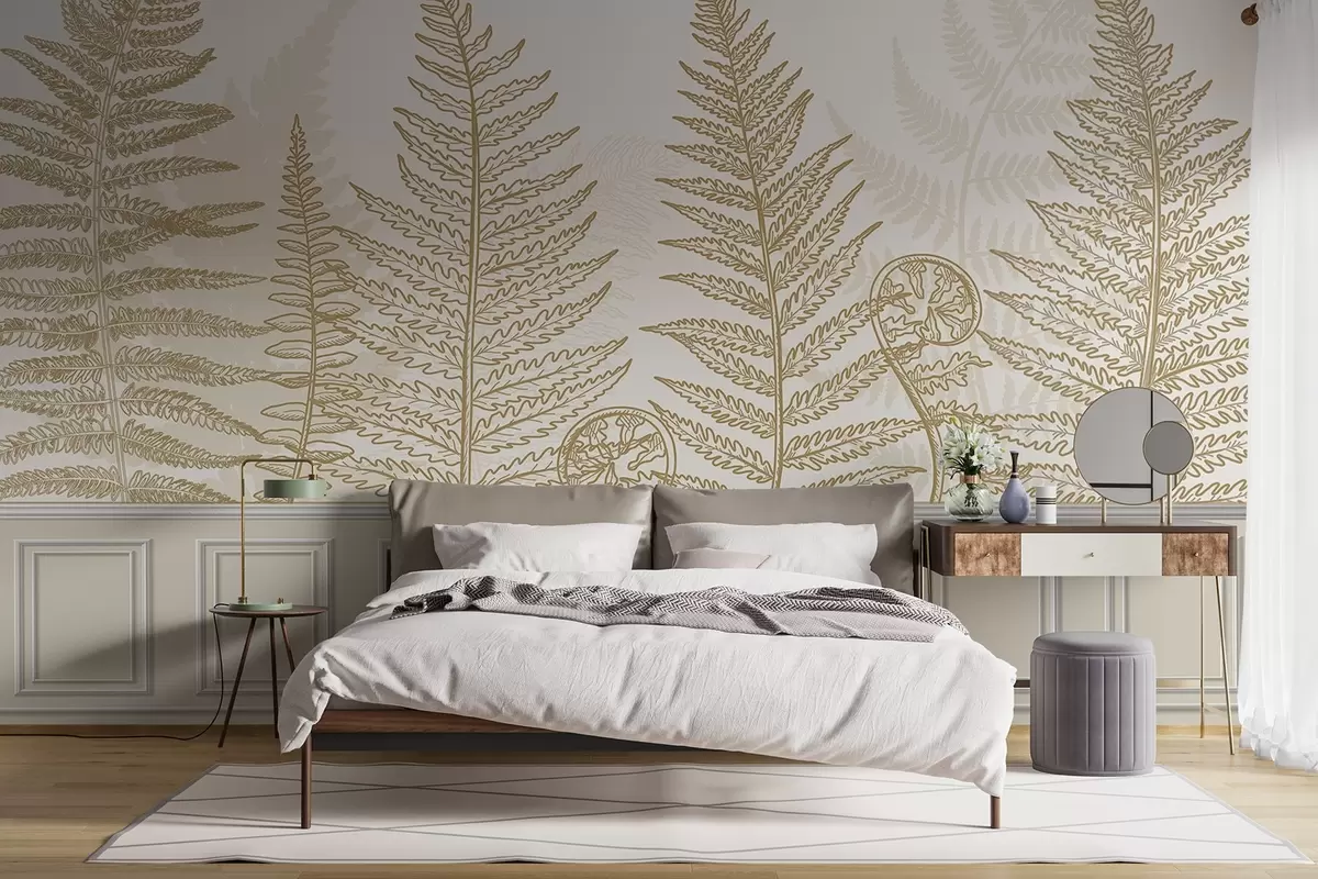 Фототапет листа, растения, папрат, светлина, ботанически, графичен Nr w04239