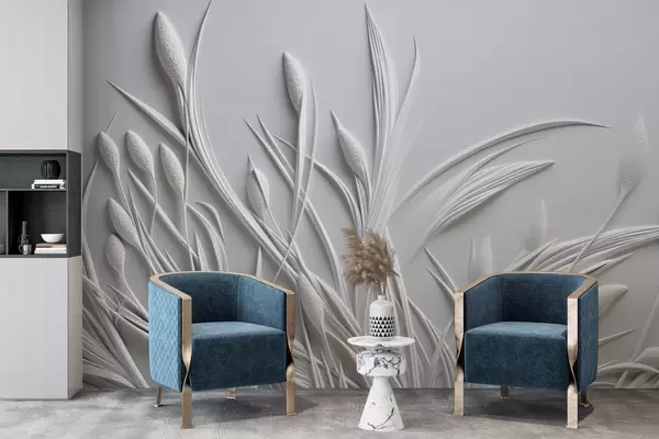 Фототапет Барелеф с нежни листа и пампаси Nr w04247