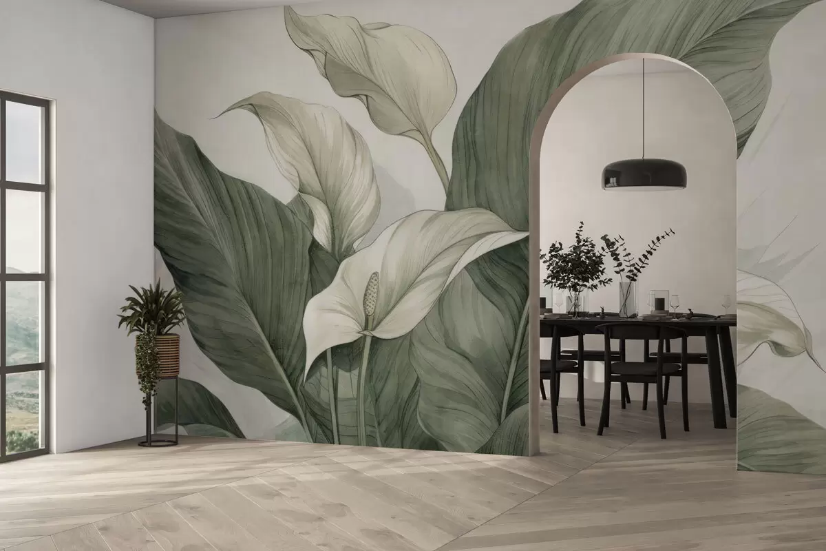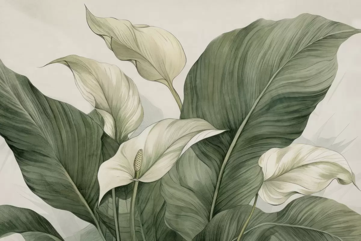 Фототапет Близък план на цъфтящ спатифилум с големи листа Nr w04263