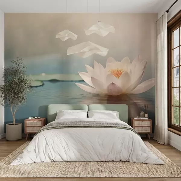 Фототапет Бяло цвете лотос върху водата Nr w04272