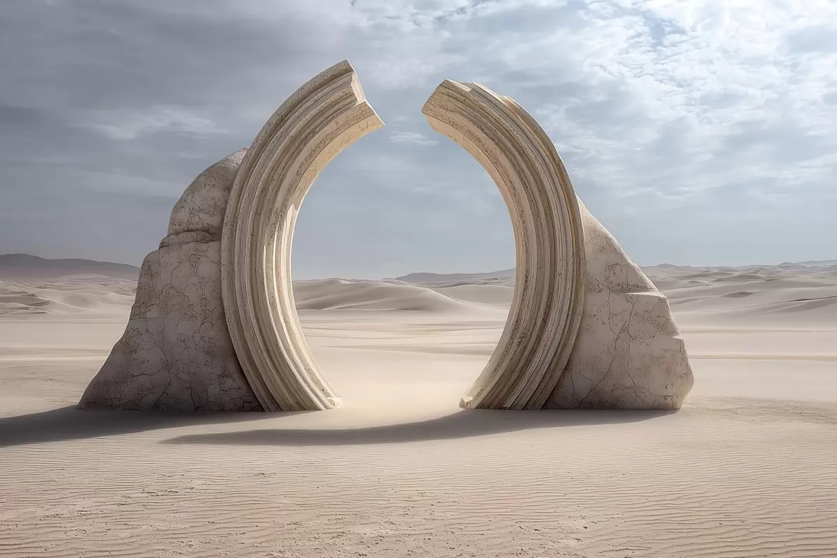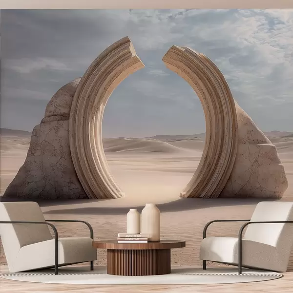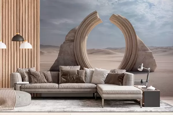 Фототапет сюрреалистичен пустинен пейзаж с голяма архитектурна арка Nr w04284