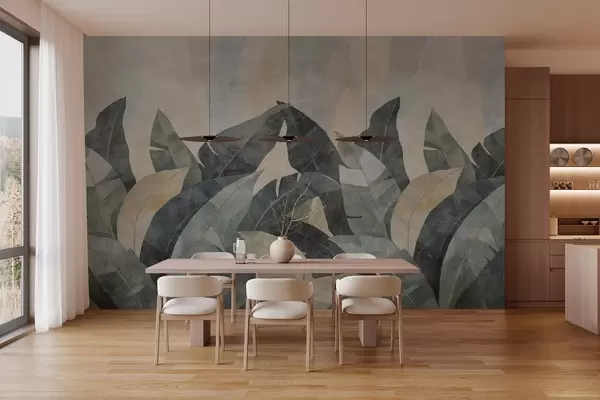 Фототапет текстурирани бананови листа в естествени нюанси на бежово, зелено и сиво Nr w04285