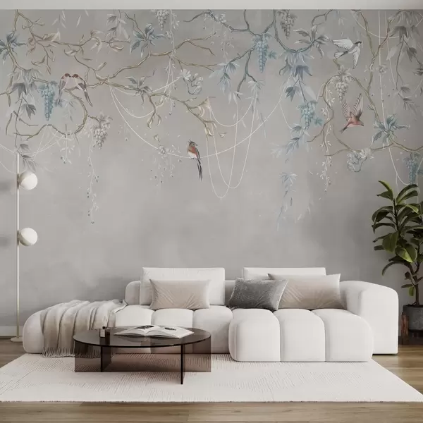 Фототапет Вариант с много светъл фон и сини акценти Nr w04302v2