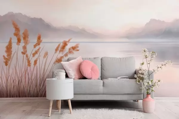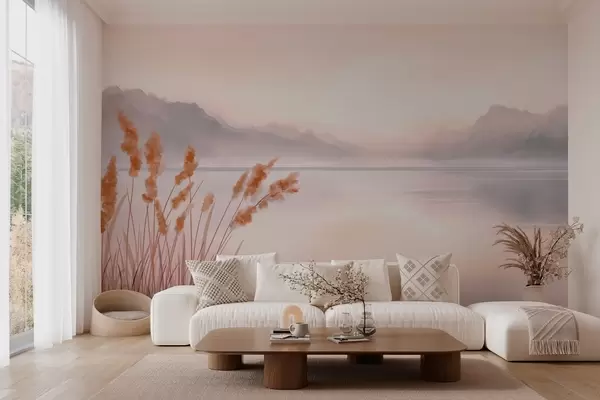 Фототапет живописно езеро с тръстика и планини Nr w04315