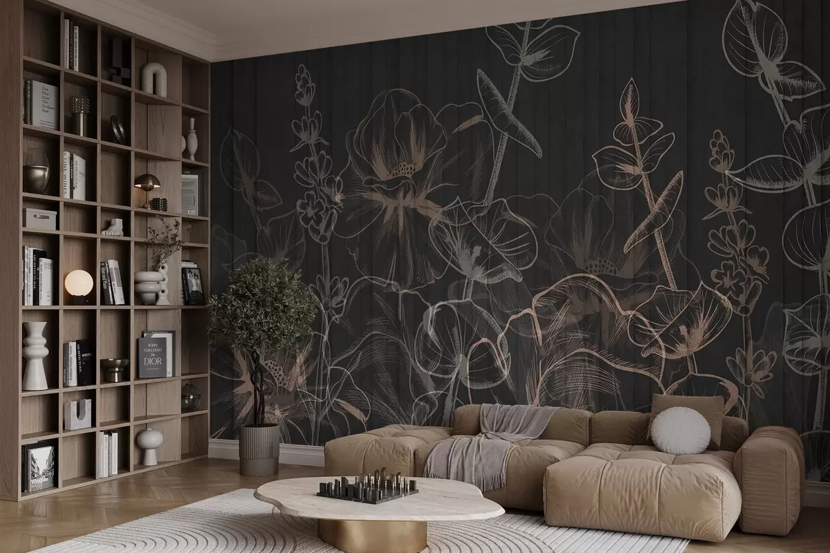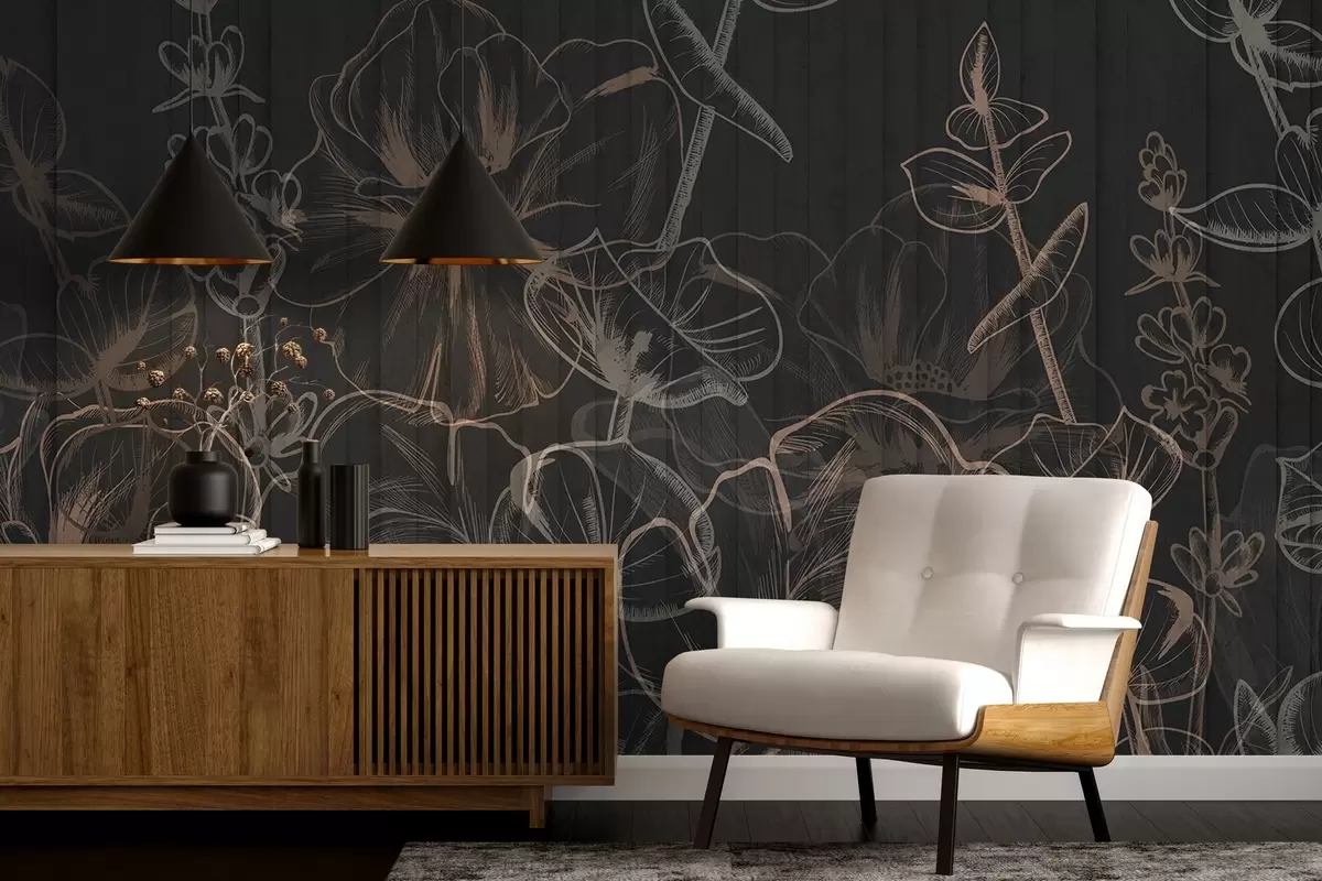 Фототапет Силуети на растения на бетонен фон w04327v2