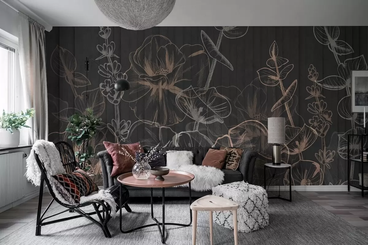 Фототапет Силуети на растения на бетонен фон Nr w04327v2