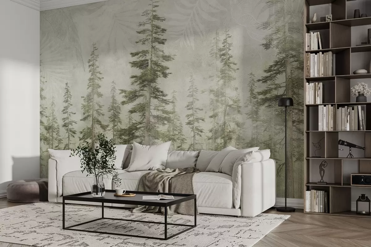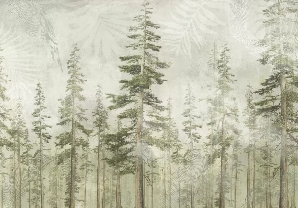 Фототапет Борова гора с текстура на винтидж хартия и фини шарки Nr w04342