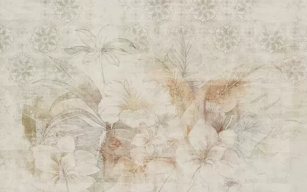 Фототапет Цветя и листа на текстуриран фон с орнаменти Nr w04343