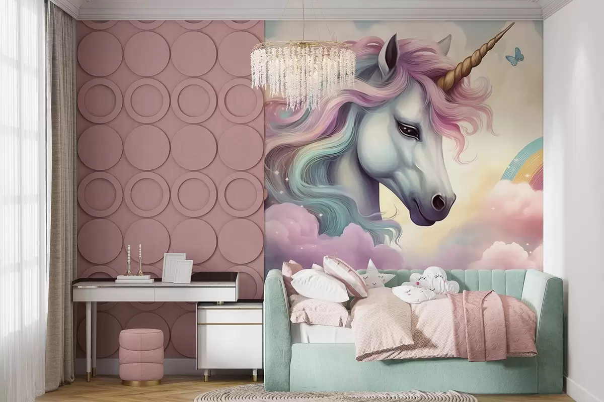 Фототапет Еднорог в облачно небе с дъга Nr w04372