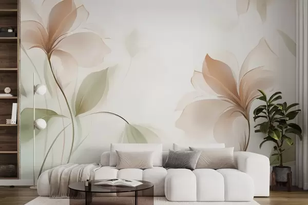Фототапет Прозрачни цветя в топли бежови и розови тонове Nr w04397