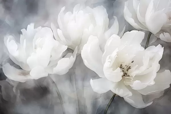 Фототапет Бели цветя на мъглив, деликатен фон Nr w04441