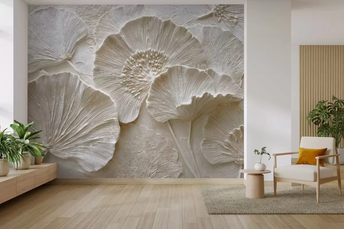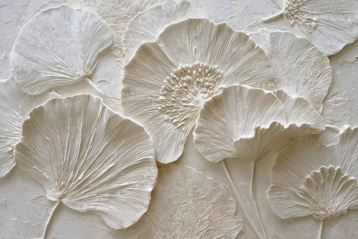 Фототапет Обемни листа от гинко в лек релефен стил Nr w04444