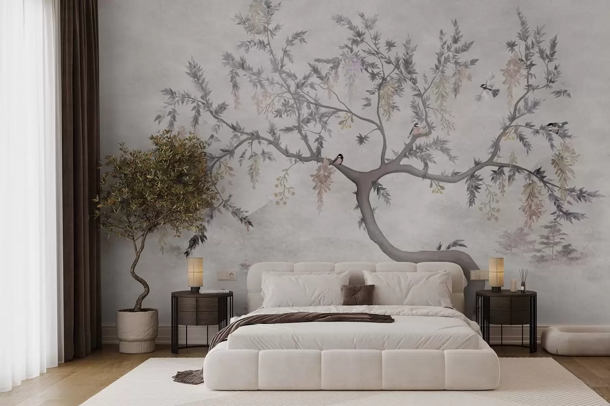 Фототапет Клон на дърво с птици в ориенталски стил Nr w04456