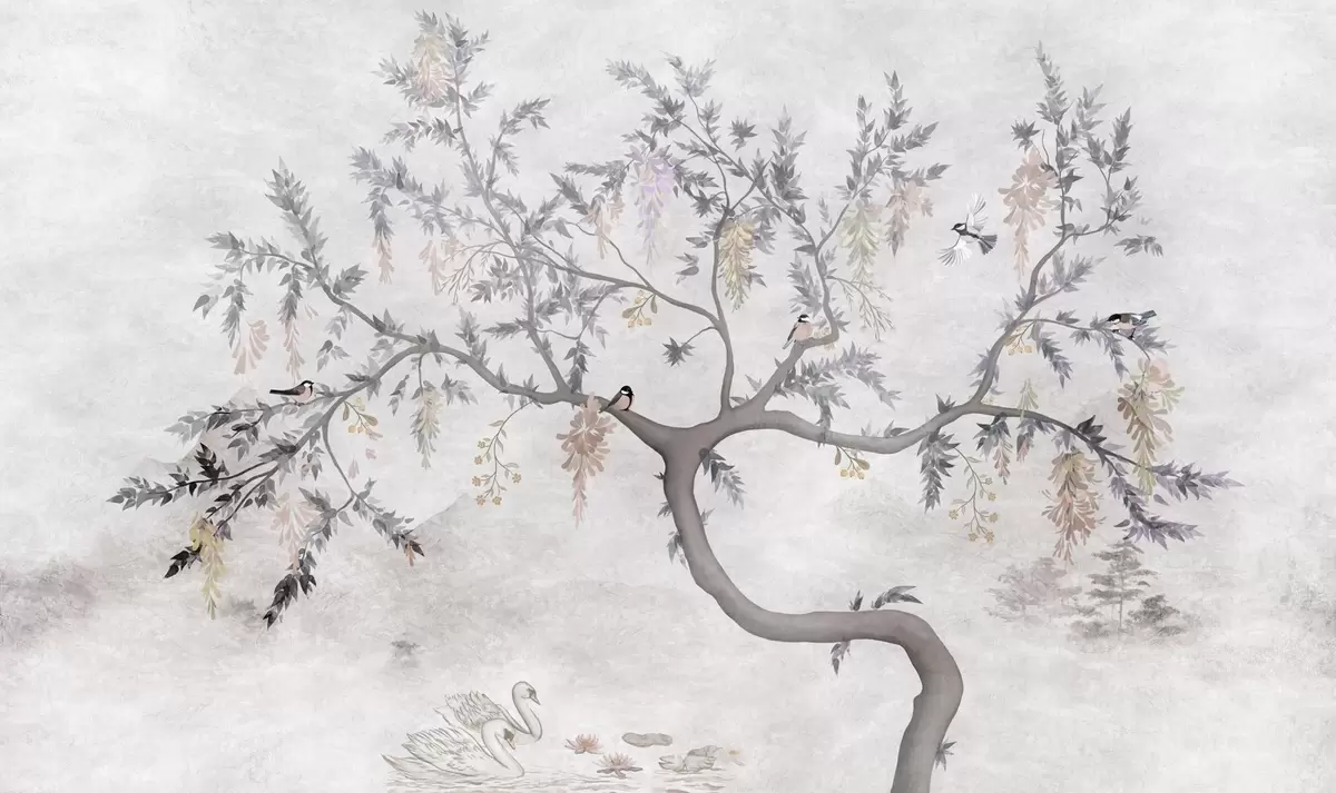 Фототапет Клон на дърво с птици в ориенталски стил Nr w04456