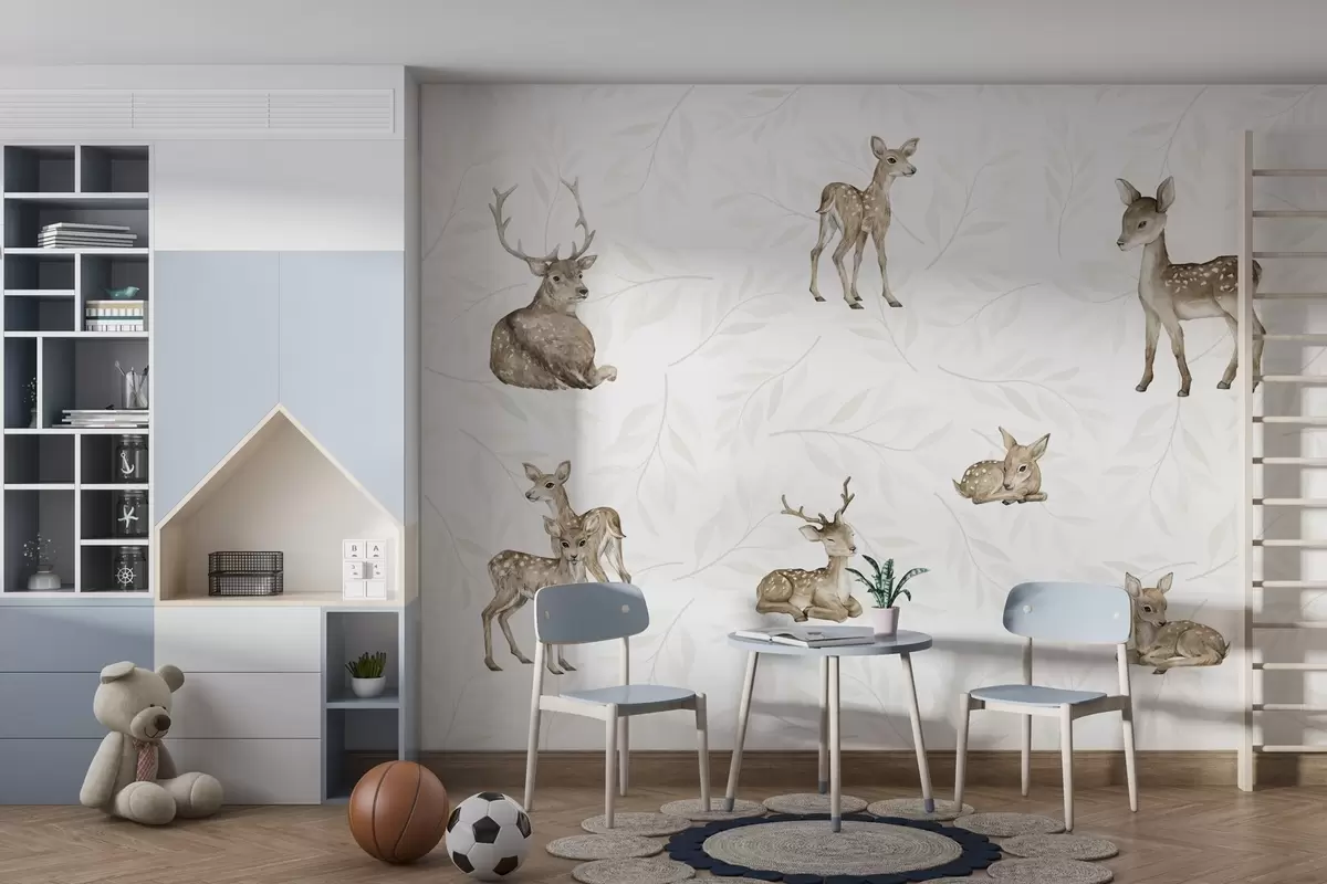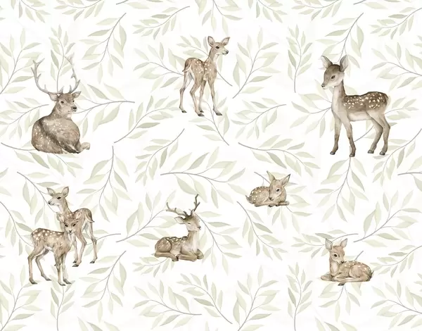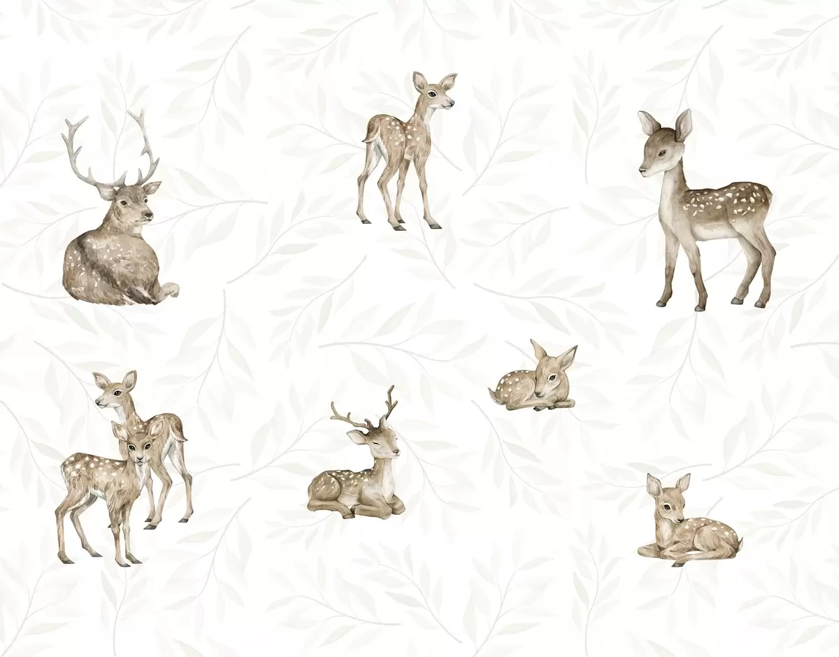 Фототапет Симпатични еленчета на светъл фон с клонки Nr w04461