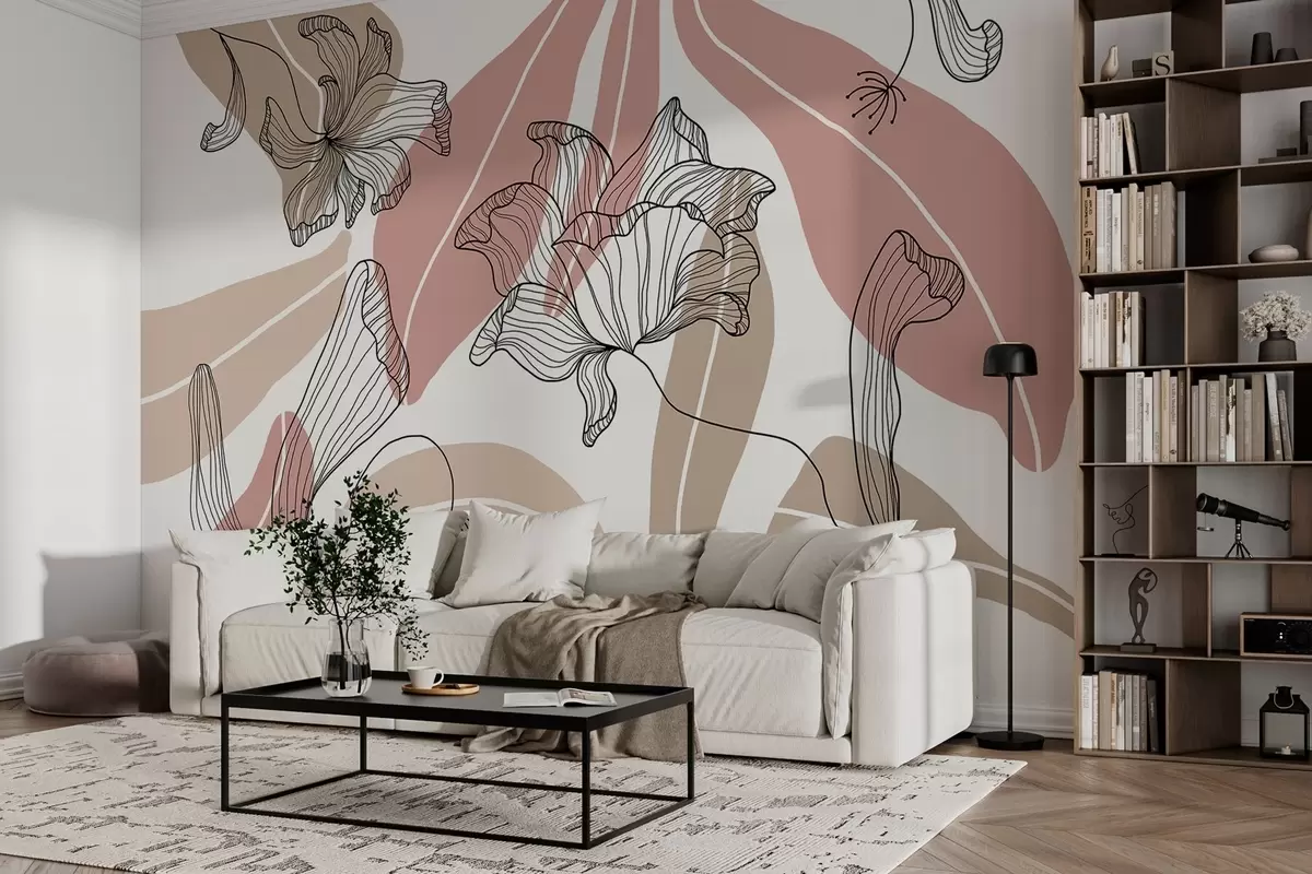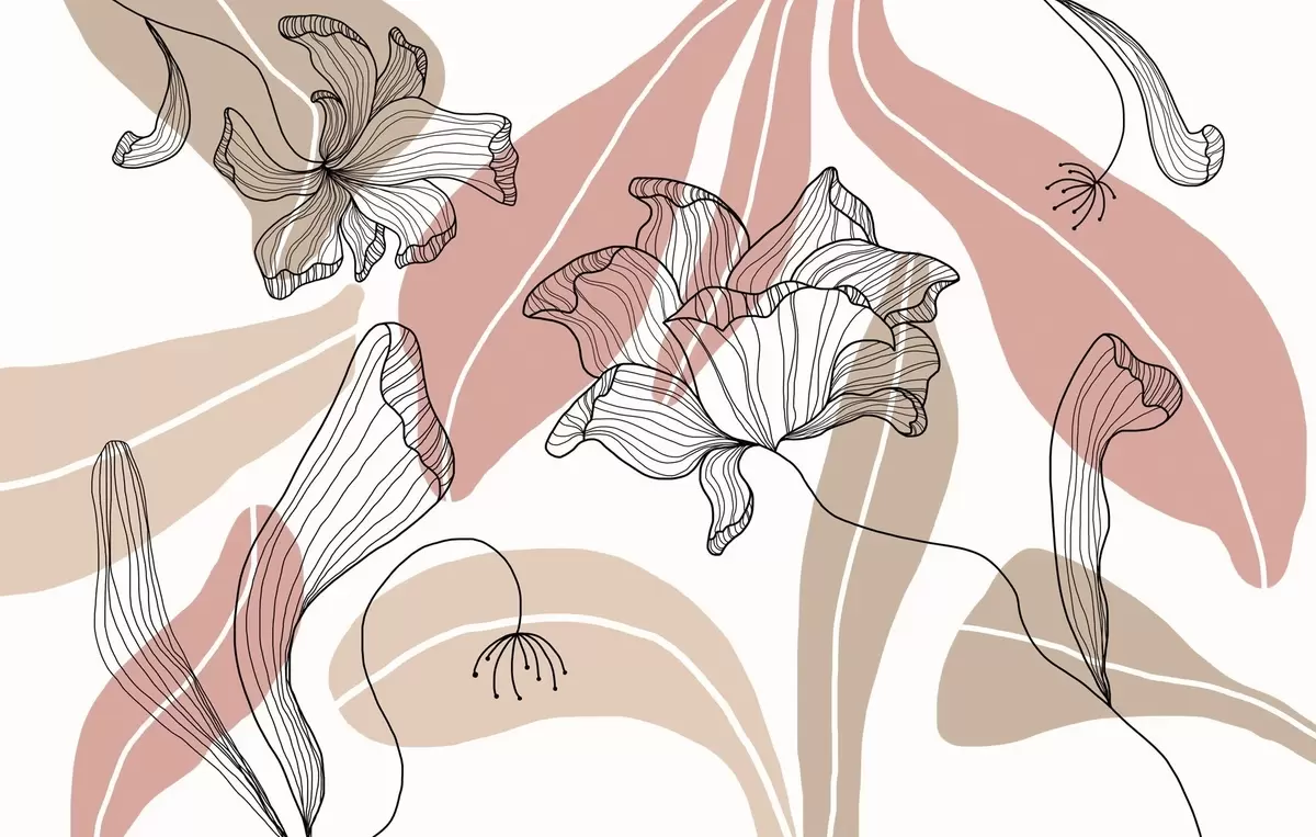 Фототапет абстрактни листа и цветя в прахообразни и бежови тонове Nr w04499