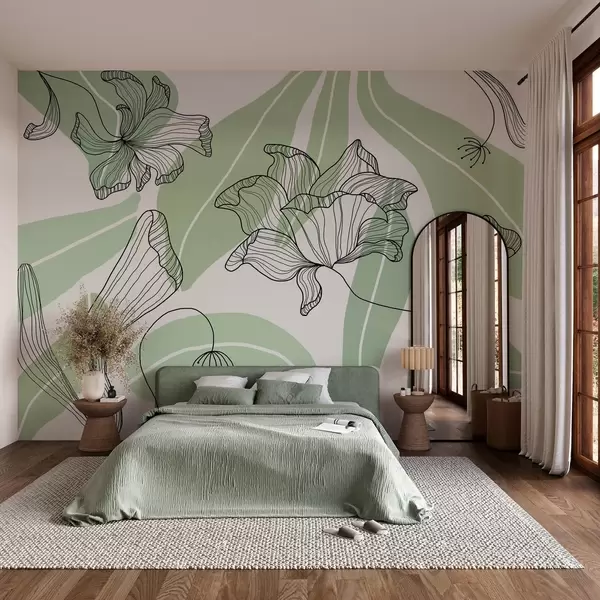 Фототапет абстрактни листа и цветя в зелени тонове Nr w04499v1