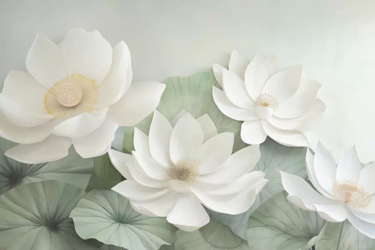 Фототапет Лотосови цветя в листата Nr w04539