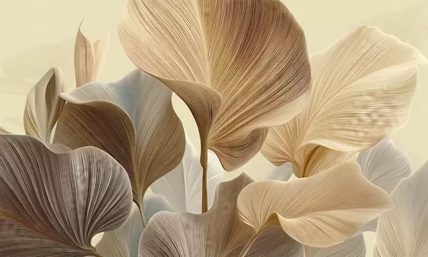 Фототапет Елегантни бежови листа с фина линейна текстура Nr w04549