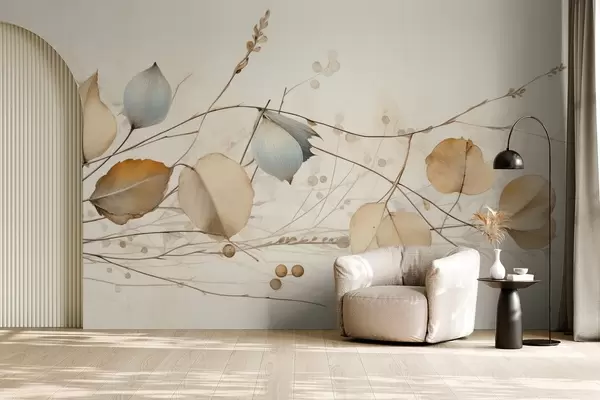 Фототапет Деликатни клонки с листа в бежови нюанси Nr w04579