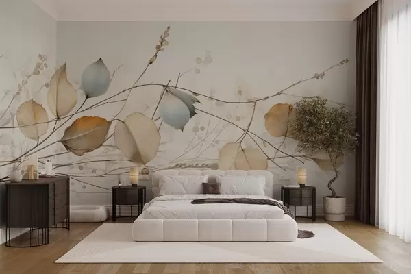 Фототапет Деликатни клонки с листа в бежови нюанси Nr w04579