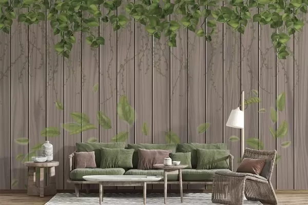 Фототапет Имитация на дървени дъски с висящи листа Nr w04603