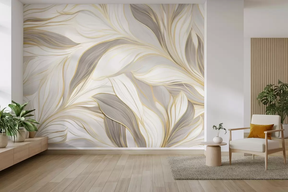 Фототапет Листа с гладки извивки в светло бежово-сиви тонове Nr w04609