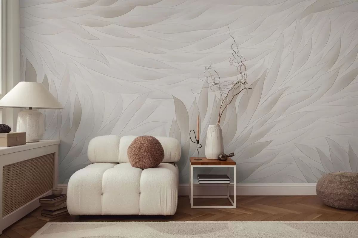 Фототапет Вълнообразни листа в меки кремави нюанси Nr w04610