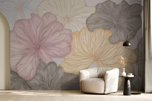 Фототапет Големи пастелни листа с фини жилки Nr w04612