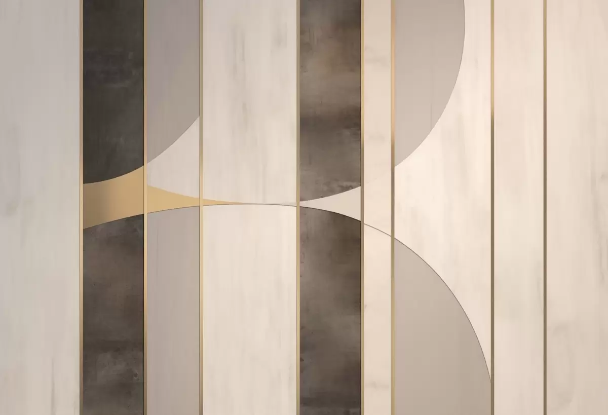 Фототапет Геометрични панели с дъги и акценти в цвят шампанско Nr w04616