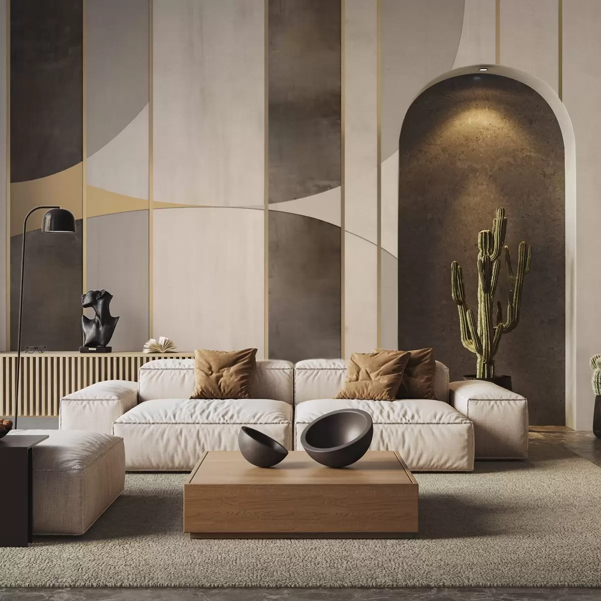 Фототапет Геометрични панели с дъги и акценти в цвят шампанско Nr w04616
