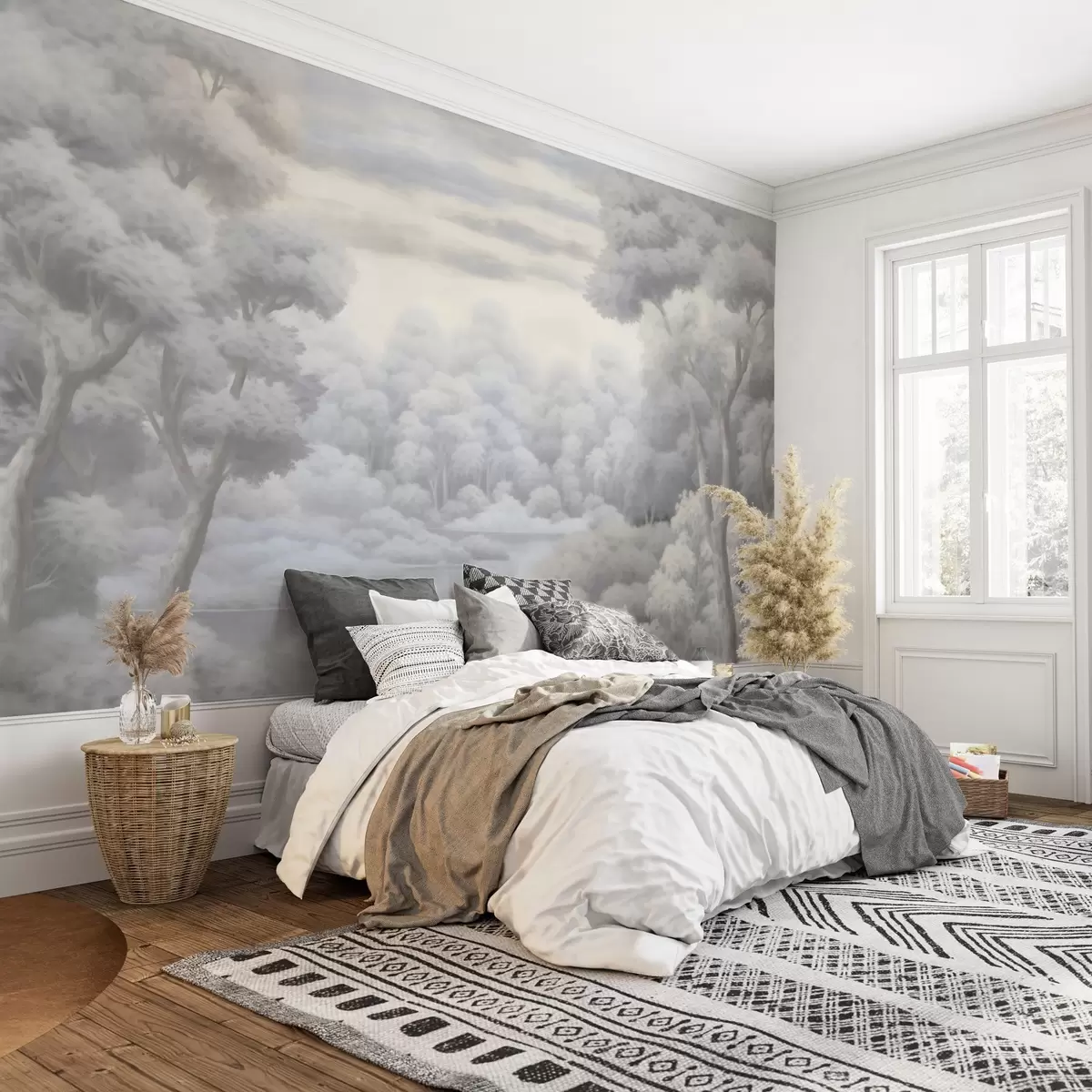 Фототапет Мъглива гора и езеро в меки сиви тонове Nr w04617
