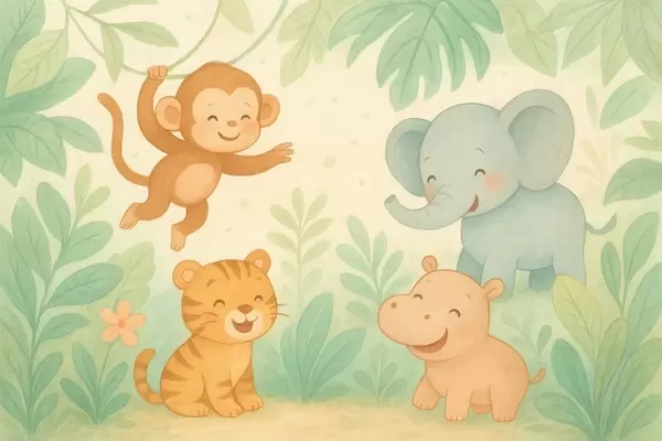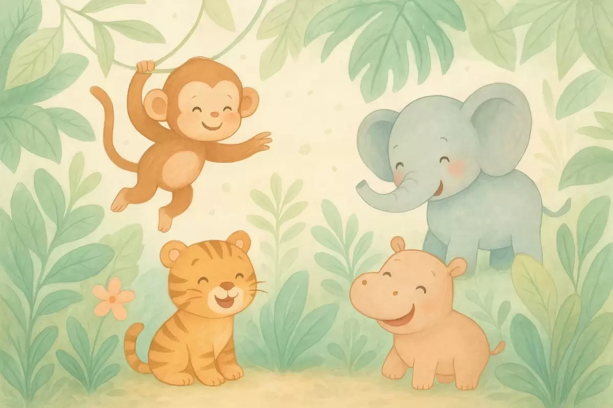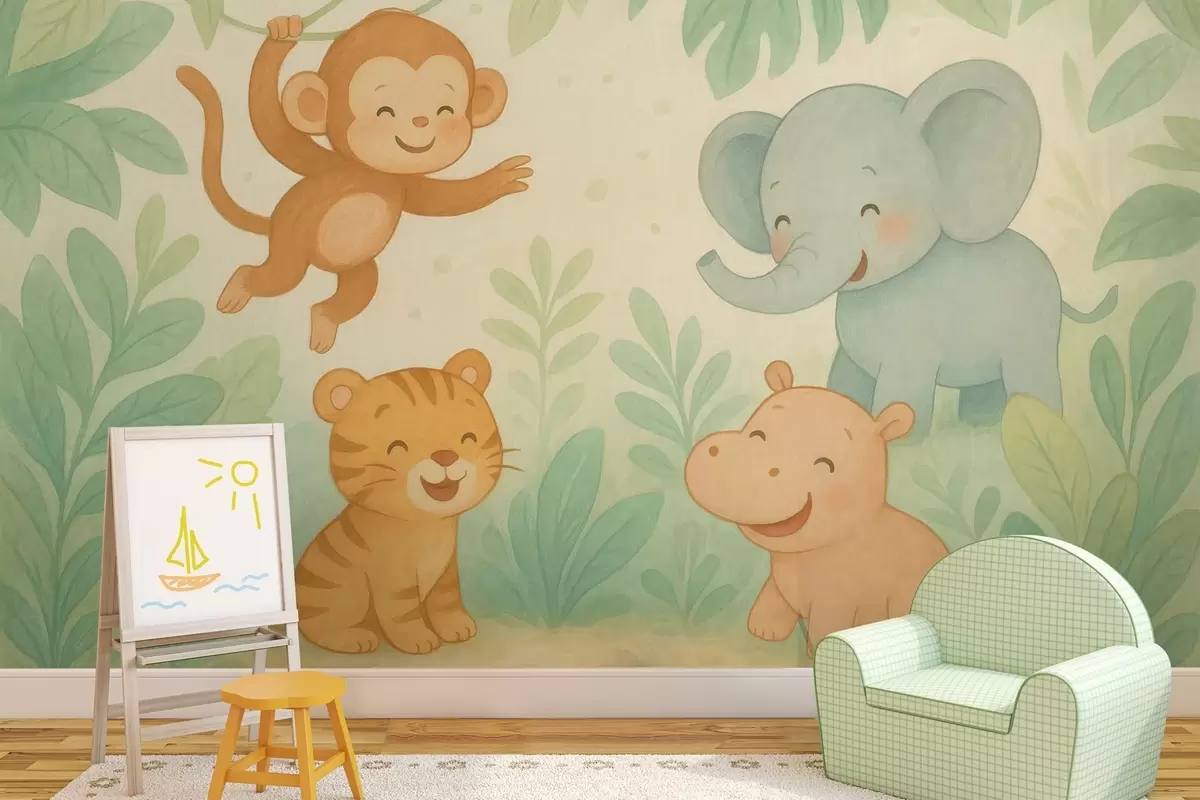 Фототапет сладки бебета животни в джунглата Nr w04622