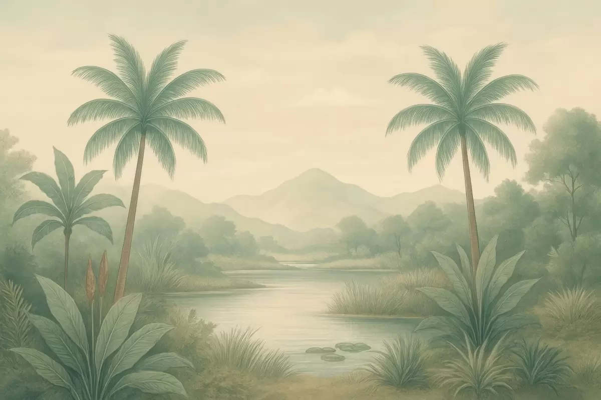 Фототапет тропически пейзаж с палми и река Nr w04623